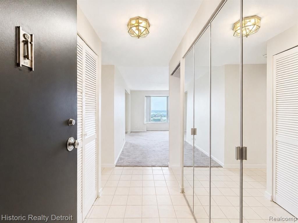 Riverfront One-Bedroom with In-Unit Washer & Dryer | Offered at $82,900— Is sold AS-IS and priced to sell. 1300 E. Lafayette #802 offers a rare opportunity to own a one-bedroom riverfront cooperative with beautiful views of the Detroit River stretching into Canada. Perched above Lafayette Park, this light-filled residence features expansive windows overlooking beautifully landscaped grounds, newly resurfaced tennis and pickleball courts, and the waterfront beyond. The interior has been thoughtfully modified to create a more open and connected living experience, seamlessly linking the living room and bedroom. Custom closet systems and additional wardrobe storage maximize functionality, while strategically placed mirrors enhance light and spatial flow throughout. The kitchen features new Kenmore appliances within an efficient footprint, and a standout feature is the rare in-unit washer and dryer, offering a level of everyday convenience not commonly found in the building. Offered as-is, this residence presents an exceptional opportunity for buyers seeking value with the ability to personalize and elevate the space over time. Residents of 1300 E. Lafayette enjoy two outdoor heated pools, newly resurfaced tennis and pickleball courts, 24-hour staffed entry with concierge services, secure indoor parking, bike storage, and beautifully maintained, park-like grounds. The monthly HOA includes property taxes, heat, air conditioning, water, building maintenance, and on-site management—providing simplicity and predictability of ownership. Ideally located just minutes from Downtown, the RiverWalk, Eastern Market, and major freeways. A compelling riverfront opportunity—offering views, functionality, and value in one of Detroit’s most iconic high-rise communities. A Smart Opportunity to Own More for Less in Downtown Detroit.