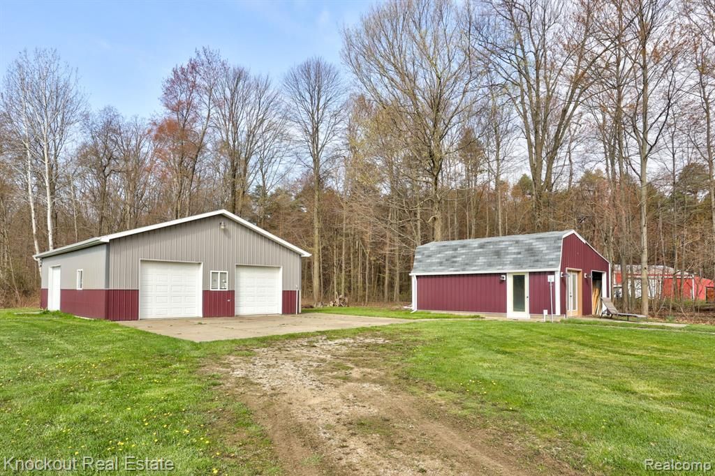 Step into a setting you simply can’t recreate—where history, nature, and privacy come together. Tucked away on a quiet dead-end road, this 2-acre wooded retreat carries whispers of the historic Pere Marquette Railway, with the original rail path still visible as it winds through the woods—an irreplaceable backdrop with wildlife that sets this home apart from anything else on the market. Surrounded by mature trees and neighboring old Jersey shrubs at the blueberry farm, the setting offers a rare blend of seclusion and charm—peaceful, scenic, and unmistakably one-of-a-kind. Inside, this 2,000 sq ft ranch features a highly desirable split floor plan, with a private primary suite with a fully remodeled (2026) bathroom showcasing a tiled walk-in shower. The main living space flows effortlessly from the open living room into the dining area and kitchen, then into a warm and inviting family room with vaulted ceilings and a wood-burning brick fireplace—perfect for Michigan evenings. A sliding door leads to your own wooded backyard retreat. Function meets flexibility outside with a 30x40' pole barn (cement floors, electric) and a standout 18x24' fully remodeled accessory building—complete with drywall, cement, electric, loft space, and its own driveway. Whether you envision a home office, workshop, creative studio, or private hangout, this space opens the door to endless possibilities. Additional features include stainless Kenmore gas range, Bosch dishwasher, newer Rheem water heater, Midwest water softener, and a 220 outlet off the deck. All of this just minutes from Otter Lake and M-15—giving you the feeling of being miles away, without sacrificing convenience.