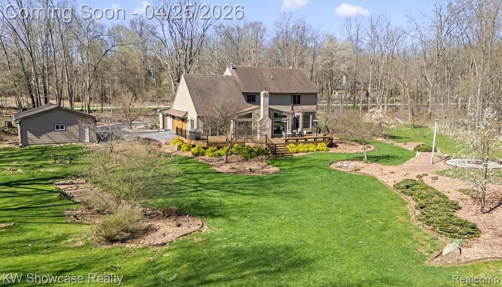 THIS SPECTACULAR HOME IS SITUATED ON A HUGE (2.9 ACRE) BEAUTIFULLY LANDSCAPED LOT IN DESIRABLE MYSTIC HILLS ESTATES. IDEALLY LOCATED NEAR KENSINGTON METRO PARK AND CHARMING DOWNTOWN MILFORD, the gorgeous colonial features an open and flowing plan, First Floor Laundry Room, "Ready to Finish" Basement, beautiful Trex Deck, 3 Car Attached Garage AND 3 Car Detached Garage! Beautiful entry doors lead to the home's Foyer featuring coat closets, open rail staircase, rich hardwood flooring and gorgeous glass doors opening to the Library/Study. The adjacent Living Room features elegant crown molding, a large box-out window, fireplace with mantel and hardwood flooring that flows into the adjoining Dining Room featuring elegant crown molding, chair rail and a beautiful bay window. The fantastic Kitchen and Nook are furnished with custom cabinetry, granite counters, stylish tile backsplash and premium SS appliances. The fabulous Family Room features a cathedral ceiling, attractive transom windows above large windows facing the yard, striking stone fireplace, hardwood flooring and a door-wall to the deck. Beyond the Family Room lies a stunning Sun Room with ceramic flooring and two door-walls leading to the deck. The wonderful Owner's Suite features a cathedral ceiling with fan/light, walk-in closet and En-suite with dual vanities and Euro-glass enclosed shower with custom ceramic surround. The second floor includes 3 additional Bedrooms, each with ceiling fan/light and a full Bath with dual sink vanity and ceramic flooring. First floor Laundry Room is equipped with washer, dryer, storage cabinets, built-in ironing board, utility sink and ceramic flooring. updates include anderson windows, newer driveway, trex decking, hardy siding, updated kitchen and primary bath. Garage compressor is excluded from the sale.