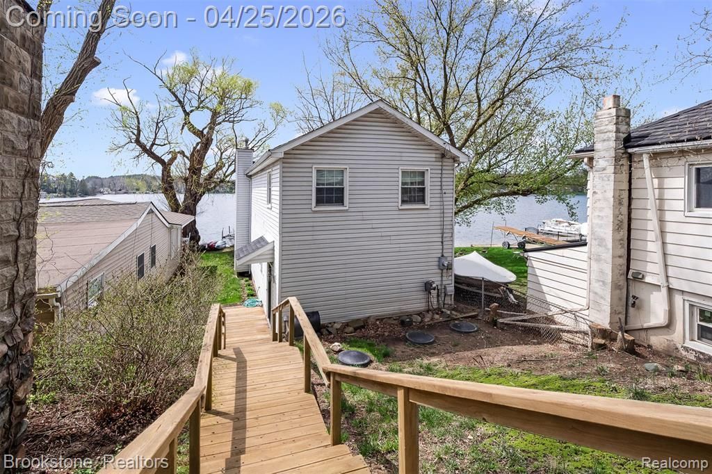 Welcome to beautiful 125-acre All Sport Bald Eagle Lake—Spend summers wake surfing, skiing, tubing, paddle boarding, or kayaking, spring and fall; ice fish, skate, or snowmobile from your backyard in winter. Bald Eagle Lake is an outdoors lover’s playground! Positioned on the main body with gorgeous westward sunsets from your large outdoor living space. Your backyard captures all the Up North Michigan feels, in bustling Oakland County. This inviting home offers 2 bedrooms, 2 full bathrooms, and a flexible bonus room that can easily serve as a 3rd bedroom, home office, guest space, or hobby room—giving you the flexibility to fit your lifestyle needs. Step inside to a warm, light-filled interior where large windows bring in natural light and offer water views from the open-concept main living spaces, blending the kitchen, dining, and living room, which are perfect for gathering and unwinding after a day on the water, as they feature maintenance-free/water-friendly luxury vinyl and tiled floors. The spacious primary bedroom also offers panoramic water views from inside or the private balcony. The detached 2-car garage is another standout feature, complete with a spacious upstairs 20'x20' loft that offers incredible potential to be finished as additional living space, a studio, or a private retreat. Whether you're searching for a full-time residence, a weekend getaway, or an investment opportunity, this property checks all the boxes. Enjoy the best of Brandon Township living with direct access to Bald Eagle Lake’s all-sports year-round recreation! Just minutes from Exit 91 off I-75, Main Street Clarkston's shopping/dining and Great Lakes Crossing, Auburn Hills. Don’t miss your opportunity to own a piece of lakefront living—your Up North feel, close to home!