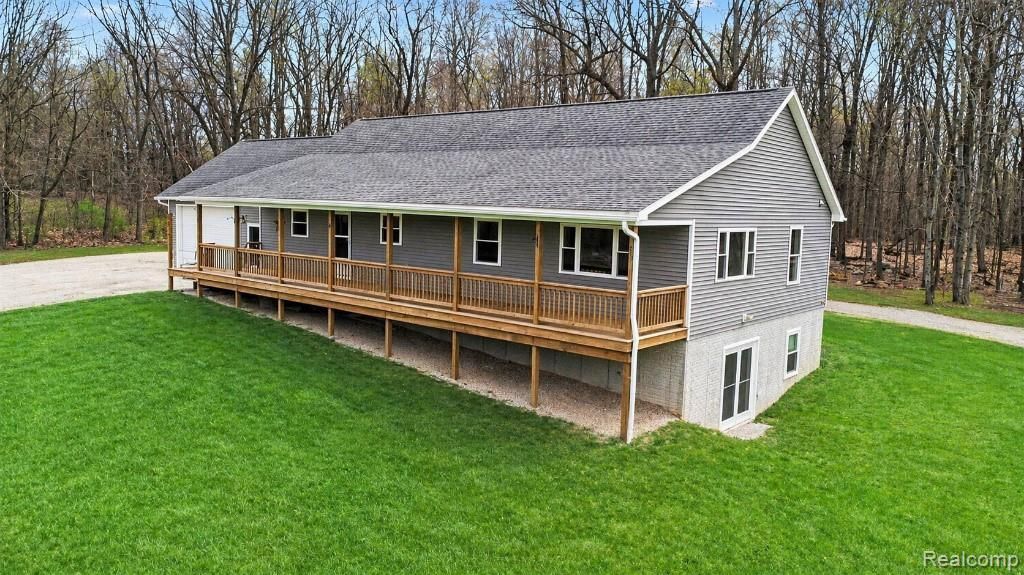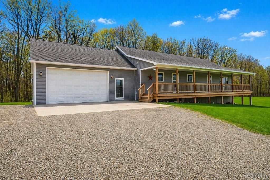 Welcome to a rare opportunity in Metamora, Michigan. This beautiful ranch home is situated on 19.47 acres of breathtaking land featuring a private pond. With 3,300 square feet of finished living space, the residence includes 4 bedrooms, 3 full baths, and 1 half bath. The interior has been fully updated with endless custom features and an open concept layout throughout. The kitchen is designed for entertaining, boasting custom cabinets, granite countertops, a tile backsplash, and a huge island. Solid oak floors flow through the main living areas, adding warmth and elegance. The home also includes a full finished walkout basement with an egress window, offering additional versatile space. Outside, the large covered front porch provides endless views of the gorgeous property and the impressive pond. Abundant wildlife makes it a hunter’s dream, with frequent sightings of deer and other game. Property this size in such a prime location will not last long. 1 Year Home Warranty included with sale!