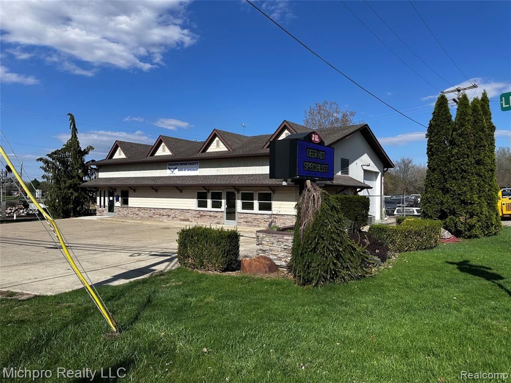 Come check out this spacious and well-maintained automotive collision shop located in a prime location with strong visibility and steady business flow. The building features two separate addresses, adding flexibility and potential for multiple business uses. The building has a combination of metal, vinyl siding and stone veneer around the exterior, a sizable digital signage in a stone monument and brick pavers near the corner of the intersection. Additional landscaping includes shrubbery and trees set in mulch in the front and spacious parking in the back of the building surrounded by chain-link fencing. The front portion was previously a pizza shop and could easily be converted back, offering an additional income stream or expansion opportunity. This established property offers great income potential and has seen numerous updates, making it a turnkey opportunity for an owner-operator or investor. The building features a total of 4,787 sq. ft., two 12’ high, sectional garage doors along the south elevation, and a 14’ high, sectional garage door along the east elevation and the floor consists of a concrete slab floor at grade level. Floor coverings include a combination of carpet and tile in the finished areas. The shop includes a sink, water closet and shower stall. The former area improved with the pizza restaurant includes a two-piece restroom, with sink and the front office area and former restaurant includes two gas, forced-air furnaces and two central-air conditioning units. Heat in the shop area is through ceiling-mounted radiant heat. Electrical consists of 200-amp service panels, plus a 100-amp service panel. The lighting is through a combination of recessed lighting in the offices, while the shop area has LED exposed lighting. The former restaurant has recessed fluorescent tube fixtures. Seller has owned the property since 2020. Improvements include new lighting, exterior sidewalk work, new air conditioning unit and furnace. Don’t miss your chance to own a versatile, income-producing property in a s