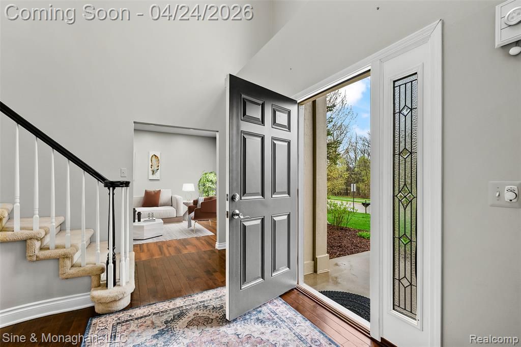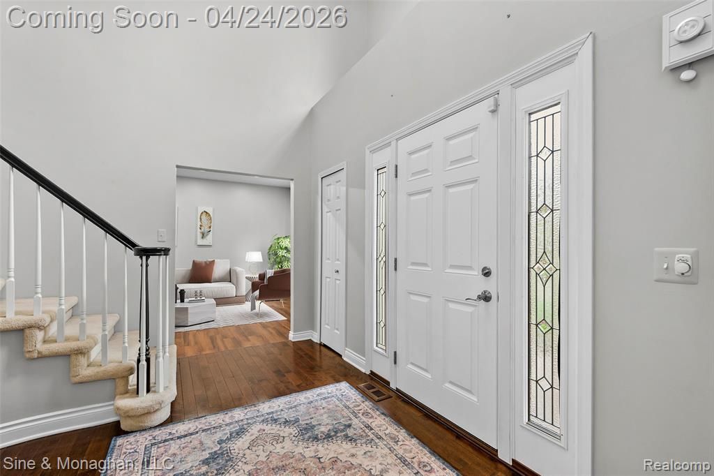 Beautiful classic colonial in north Rochester situated on nearly a half-acre homesite with outstanding curb appeal! A welcoming two-story foyer features wood flooring that continues into the kitchen, complemented by neutral paint throughout. The remainder of the home offers newer luxury vinyl plank flooring. Spacious living and dining rooms provide excellent entertaining space. The updated kitchen showcases cherry cabinetry, a center island, granite countertops, stainless steel appliances, a newer hood vent and subway tiled backsplash. The kitchen opens to a vaulted family room with doorwall to a newer stamped concrete patio. French doors off the foyer provide privacy for wonderful home office space. The main level also includes a generously sized laundry room and a three-car side-entry garage. Upstairs, the expansive primary suite features two walk-in closets and a large en-suite bath with dual sinks, a soaking tub, and a separate shower. Additional bedrooms are well-appointed with a Jack and Jill bath, plus a third full bath with en-suite access to the front bedroom. The finished lower level adds valuable living space with a wet bar, ideal for entertaining, along with room for a home gym and ample storage. Roof 2019, furnace 2020, French drain rear yard, exterior trim caulked and painted. Located within the highly regarded Rochester Community School District and close to parks, trails, and shopping in downtown Rochester and the Village of Rochester Hills. Move-in ready and waiting for you to call it home!!