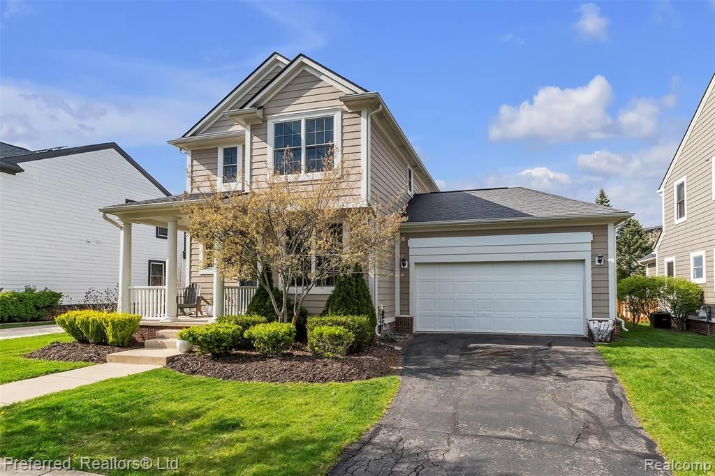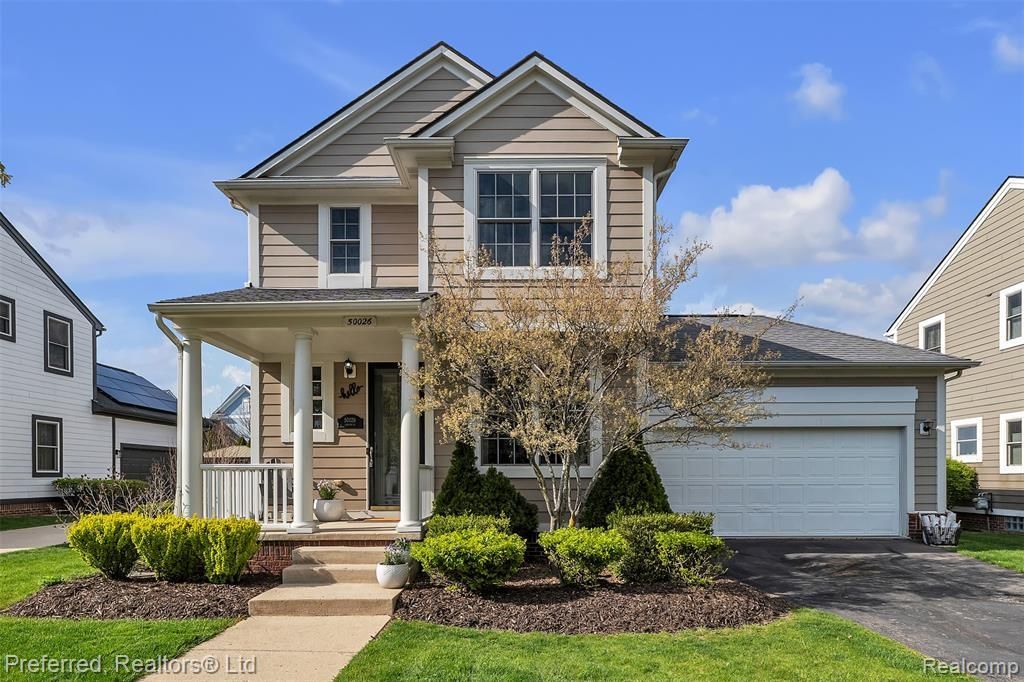 Charming curb appeal and a classic inviting interior makes this Cherry Hill Village home a must-see. Located in one of Canton’s most sought-after communities—known for its miles of walking paths, pocket parks, and vibrant village atmosphere—this home welcomes you with a delightful covered front porch perfect for relaxing. The updated kitchen features quartz countertops and subway tile backsplash, stainless steel appliances, hardwood floors, and modern fixtures. A spacious dining nook easily accommodates a full dining table. Dual living spaces include a large front living room with hardwood floors and a sunken family room highlighted by French doors, natural light and access to the charming backyard. Upstairs, the spacious primary suite offers a walk-in closet, vaulted ceiling, and private bath. All bathrooms have been tastefully updated. Convenient second-floor laundry adds everyday ease. The wider-than-average lot provides extra room to play and natural privacy. All within walking distance to the Village Theater, Farmers Market, restaurants, and the local ice cream shop. Welcome to life in The Village!