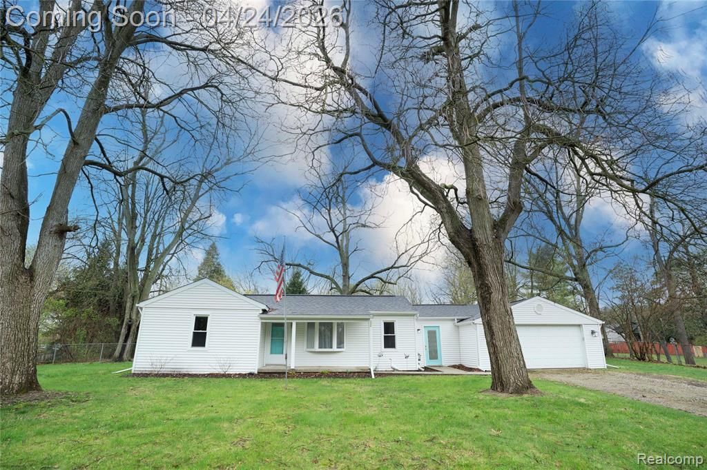 Welcome to this beautifully renovated ranch in Auburn Hills, set on over half an acre with a fully fenced backyard—offering space, privacy, and modern updates throughout. Completely updated in 2022, this home features a new roof, siding, windows, furnace, A/C, and water heater—giving you true peace of mind. Inside, you’ll love the open-concept layout with engineered wood flooring that flows seamlessly through the main living areas. The stunning, fully renovated kitchen opens to a spacious living room and dining area, creating the perfect space for everyday living and entertaining. The home offers two comfortable bedrooms and a stylishly updated full bathroom. A large mudroom provides excellent additional storage and functionality, while the half bath conveniently includes a laundry area. The unfinished basement offers even more storage potential, and the two-car attached garage adds everyday convenience. With its modern updates, generous lot, and move-in ready condition, this home is a fantastic opportunity in a great Auburn Hills location.