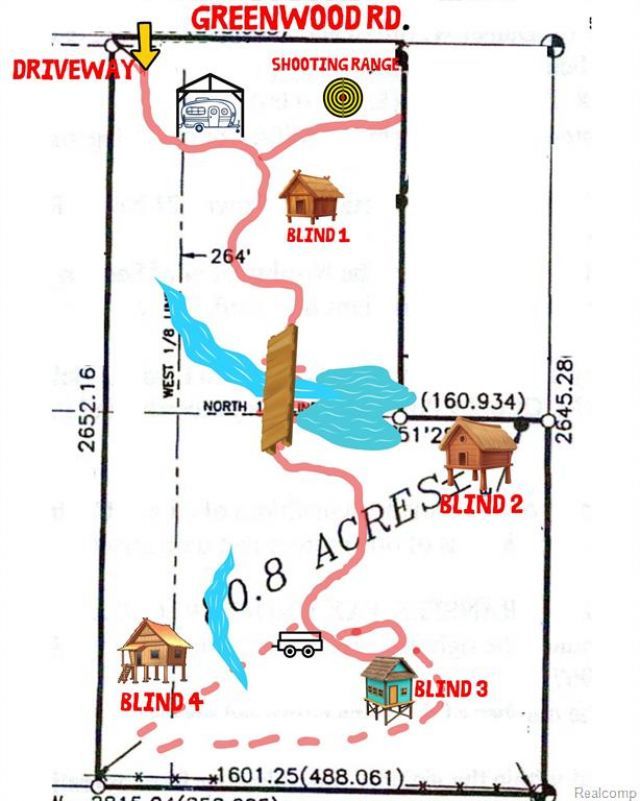 Imagine stepping onto your own 80 acres at first light, the kind of place where every trail, creek bend, and stand of timber feels like it was made just for you. No more wondering where to hunt this season—you already know. Your trail cams are pulling in steady images of solid 6- to 8-point bucks, and yes, even a massive bear roaming through. This isn’t luck… it’s your land. Picture easing down your private ATV trails, heading to one of four established blinds, already set in the right spots. Before the hunt, you stop at your own shooting range to make sure everything is dialed in. The mix of wetlands, small creeks, and a pond keeps wildlife moving through naturally, giving you the kind of consistency most hunters only hope for. Back at camp, your pavilion and storage campers hold all your gear, ready whenever you are. And when the day winds down, you can already see where your future cabin will sit—overlooking the very land that delivers season after season. This isn’t just a hunting property. It’s your place, your setup, your story waiting to unfold. Come see it now, before it's gone. Maps are approximate and all pictures are from trail cams, no AI. Do Not Trespass on property. Make an appointment with an agent to walk the property.