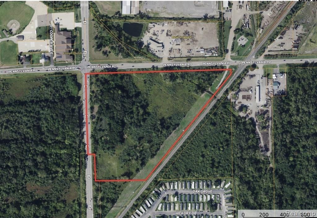 Vacant Industrial R & T, 23.37 acres at the intersection of Telegraph M-24 & Pennsylvania Road in the rapidly growing community of Brownstown. Parcel also borders the Railroad Tracks. Very high traffic area with great access to all major transportation hubs of Wayne County. Near the Ford Plant, Amazon & Metro Airport.