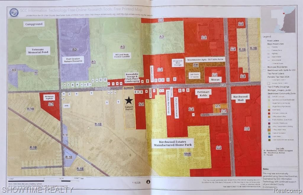 WELCOME TO THE BLOCK! Now zoned Multi-Family Residential(RM) and ready to be developed into a neighborhood of Tiny Homes, Apartment Complex, Townhouses, Condominiums, Senior Living Facility or Planned Unit Development ** LAND CONTRACT AVAILABLE ** The current owners paid BIG MONEY years ago to have city water and sewer installed on this property. Natural gas and electricity are also present. 321 feet of frontage on 10 acres of land with huge clearing upfront, beautifully mature trees out back, and seconds away from M-25 which is the main throughway in St. Clair County. Birchwood Mall and every imaginable retailer, restaurant, convenience and I-94 / I-69 expressways are just around the corner. BRING ALL OFFERS!! Interested? Question? Dial that Number!